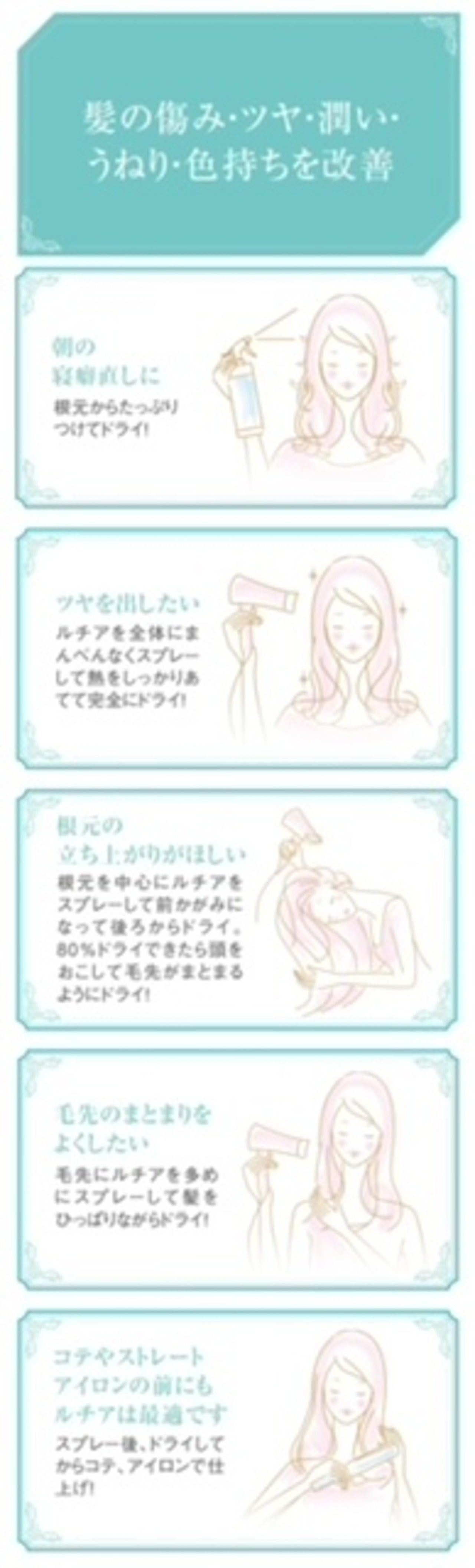 ドライヤー熱を味方に髪質改善する高濃度のキューティクル修復成分を配合したスタイリングローション「LUCiA」